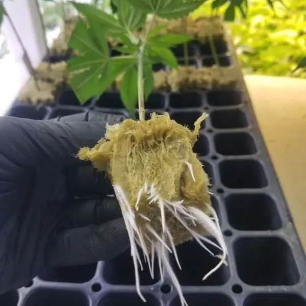 These clones are shipped in rockwool cubes for easy transplantation into a variety of mediums (hydro, soil, etc)