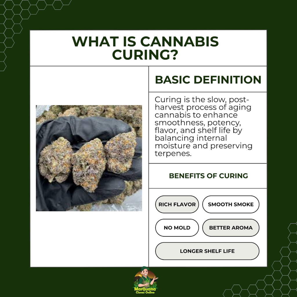 - Enhanced aroma and flavor. Curing allows terpenes to mature fully, bringing out the true scent and taste profile of each strain.