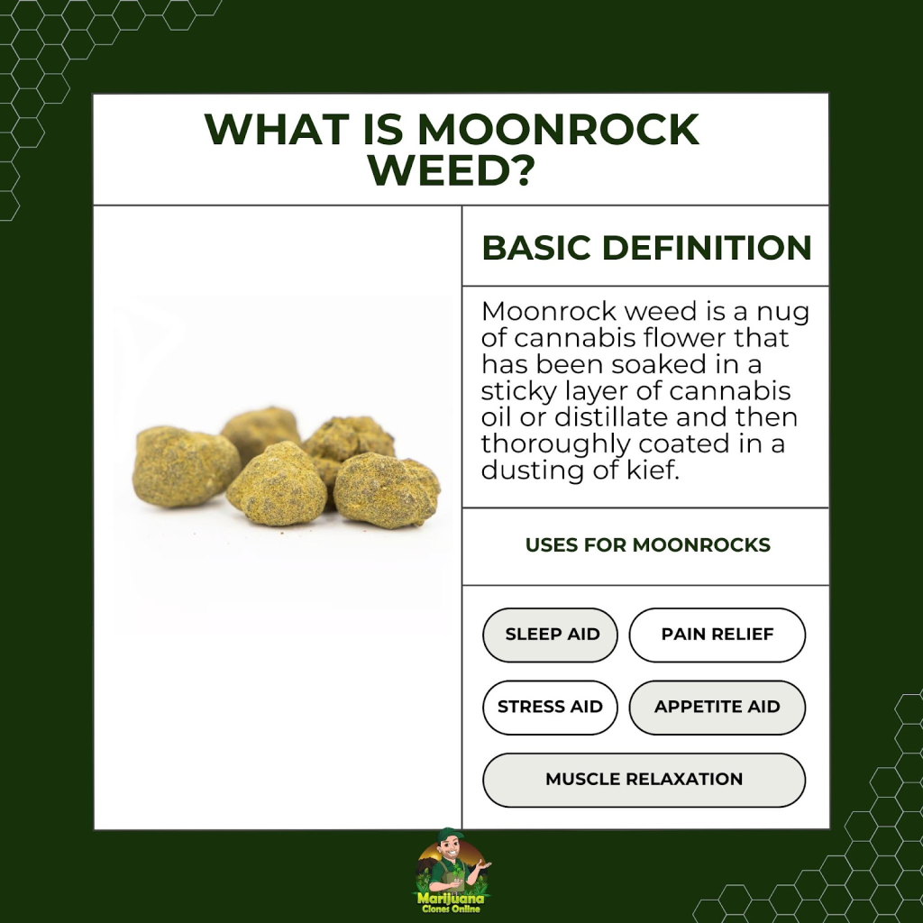 Moon rocks are one of the most powerful forms of smokable cannabis available today. They combine three potent elements into a single nug: a dense cannabis flower soaked in hash oil and then rolled in a generous layer of kief. The result is a sticky, slow-burning, THC-packed powerhouse that delivers effects far stronger than traditional flower.